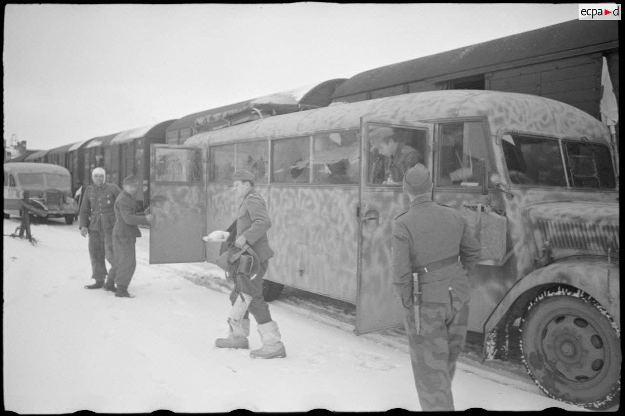 Circulation dans la gare de Vitebsk (Witebsk), ici une Peugeot Typ DK 5 au service de la Wehrmacht.