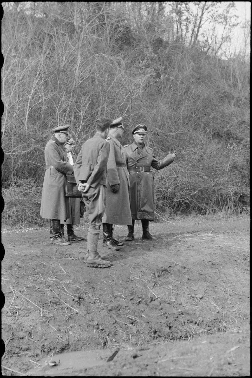 En Italie, au nord-ouest d'Anzio-Nettuno, le commandant (Major) Arnold von Roon salue les généraux Eberhard von Mackensen et Alfred Schlemm.