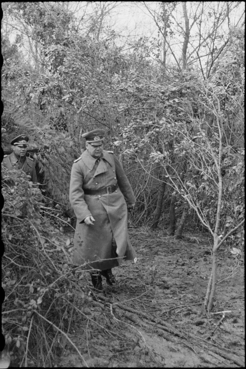 En Italie, au nord-ouest d'Anzio-Nettuno, le général (General der Flieger) Alfred Schlemm lors d'une inspection des positions de la 4.Fallschirmjäger.Division.