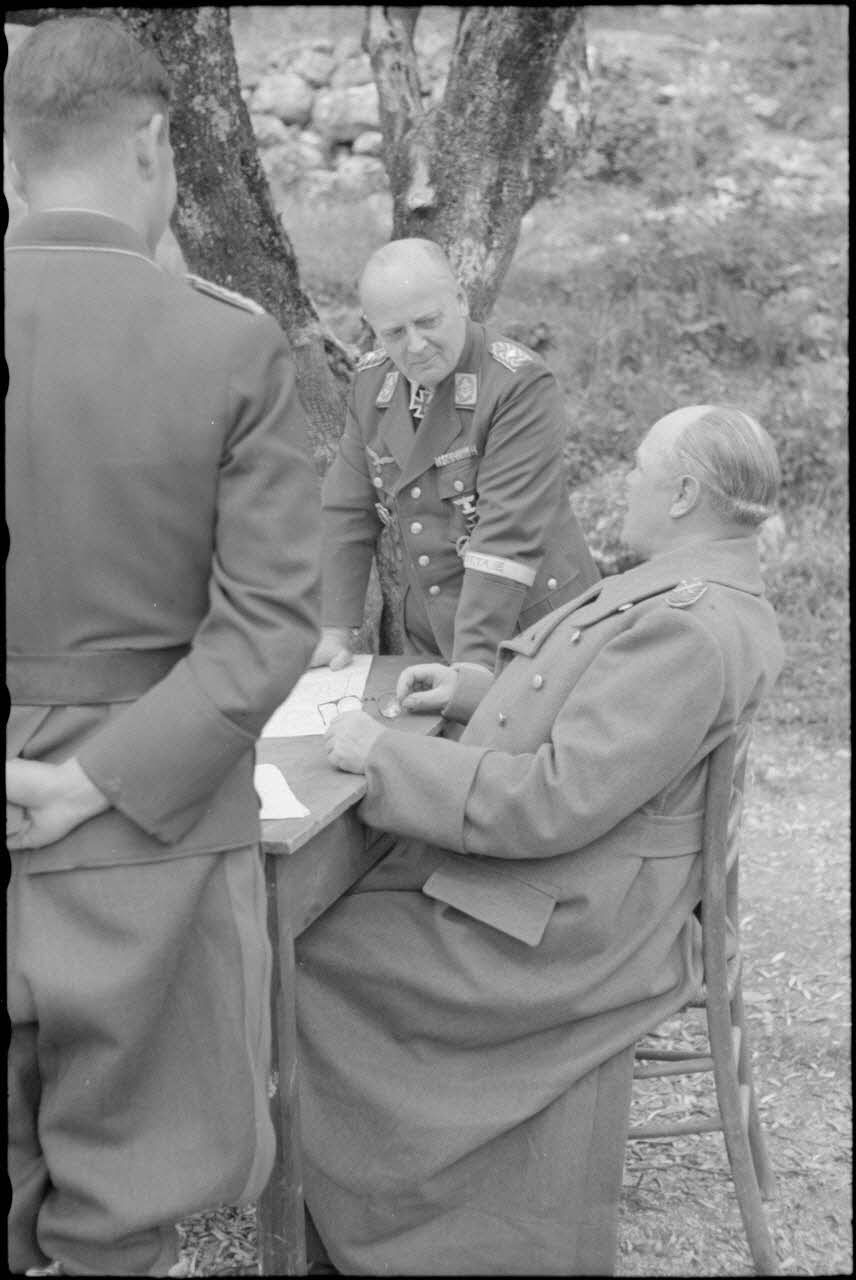 Réunion d'état-major entre le maréchal Albert Kesselring et le général Richard Heidrich dans le secteur de Cassino.