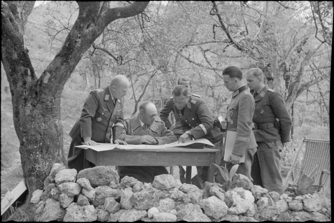Réunion d'état-major entre le maréchal Albert Kesselring et le général Richard Heidrich dans le secteur de Cassino.