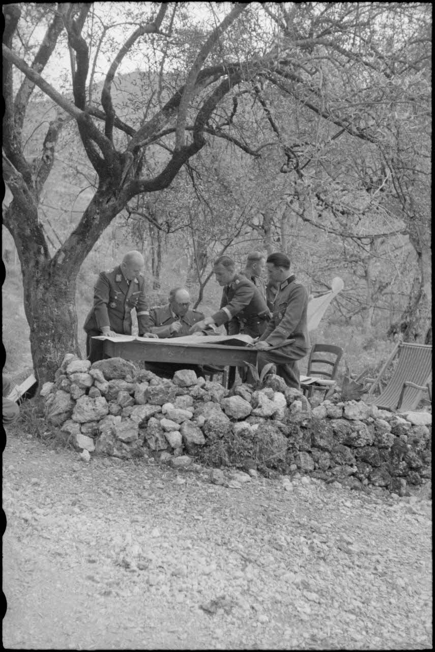 Réunion d'état-major entre le maréchal Albert Kesselring et le général Richard Heidrich dans le secteur de Cassino.