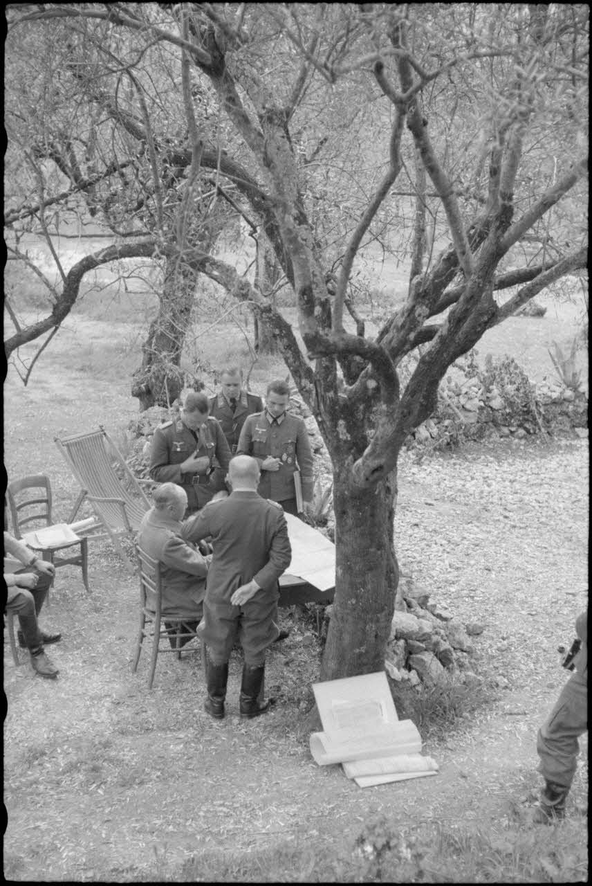 Réunion d'état-major entre le maréchal Albert Kesselring et le général Richard Heidrich dans le secteur de Cassino.