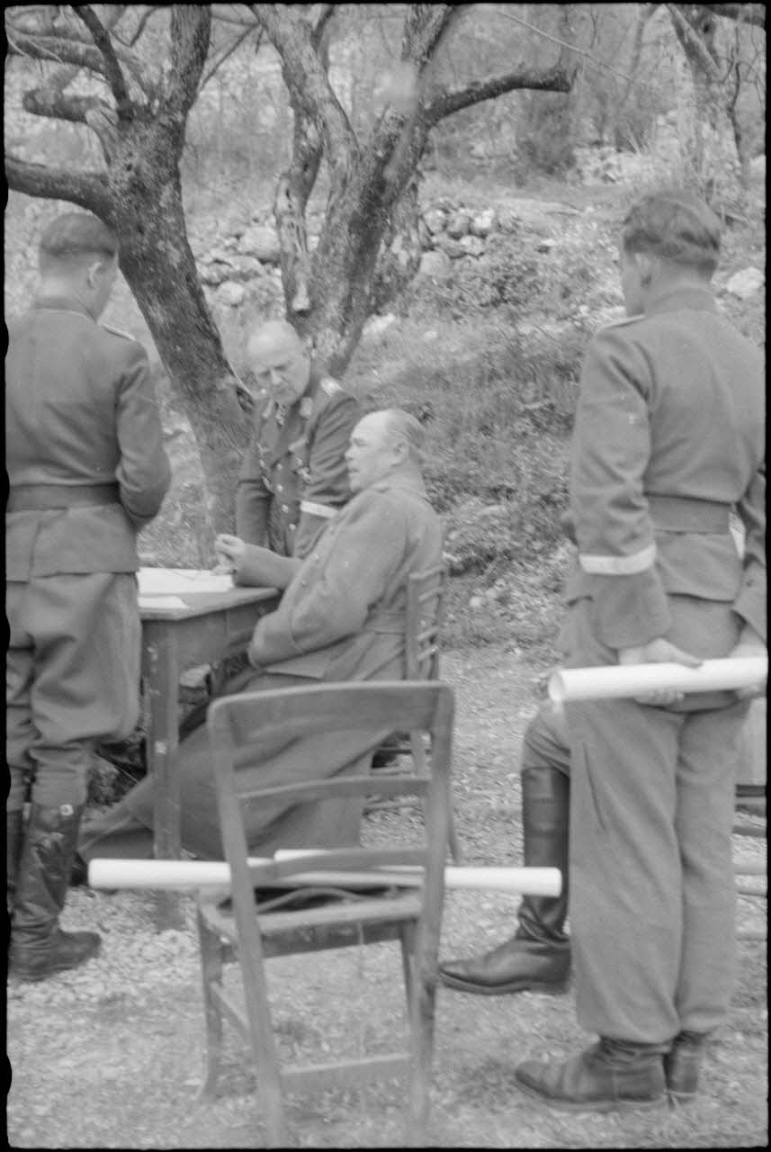Réunion d'état-major entre le maréchal Albert Kesselring et le général Richard Heidrich dans le secteur de Cassino.