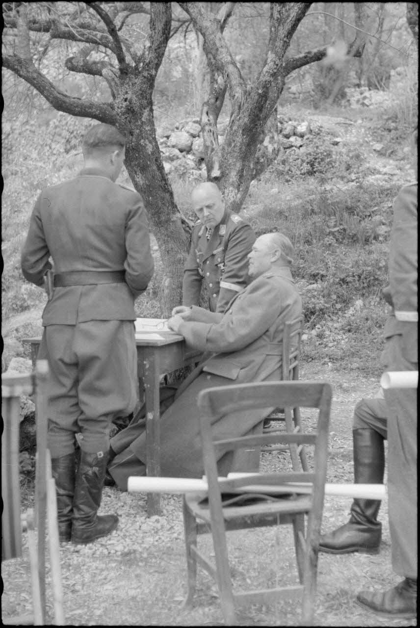 Réunion d'état-major entre le maréchal Albert Kesselring et le général Richard Heidrich dans le secteur de Cassino.