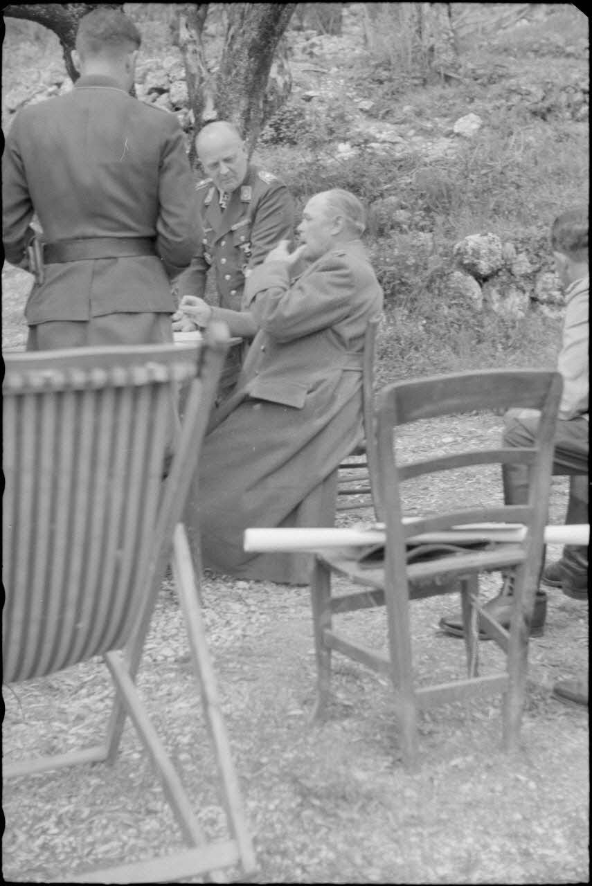 En Italie, le maréchal (Generalfeldmarschal) Albert Kesselring et Richard Heydrich évoquent la situation de la bataille de Cassino.