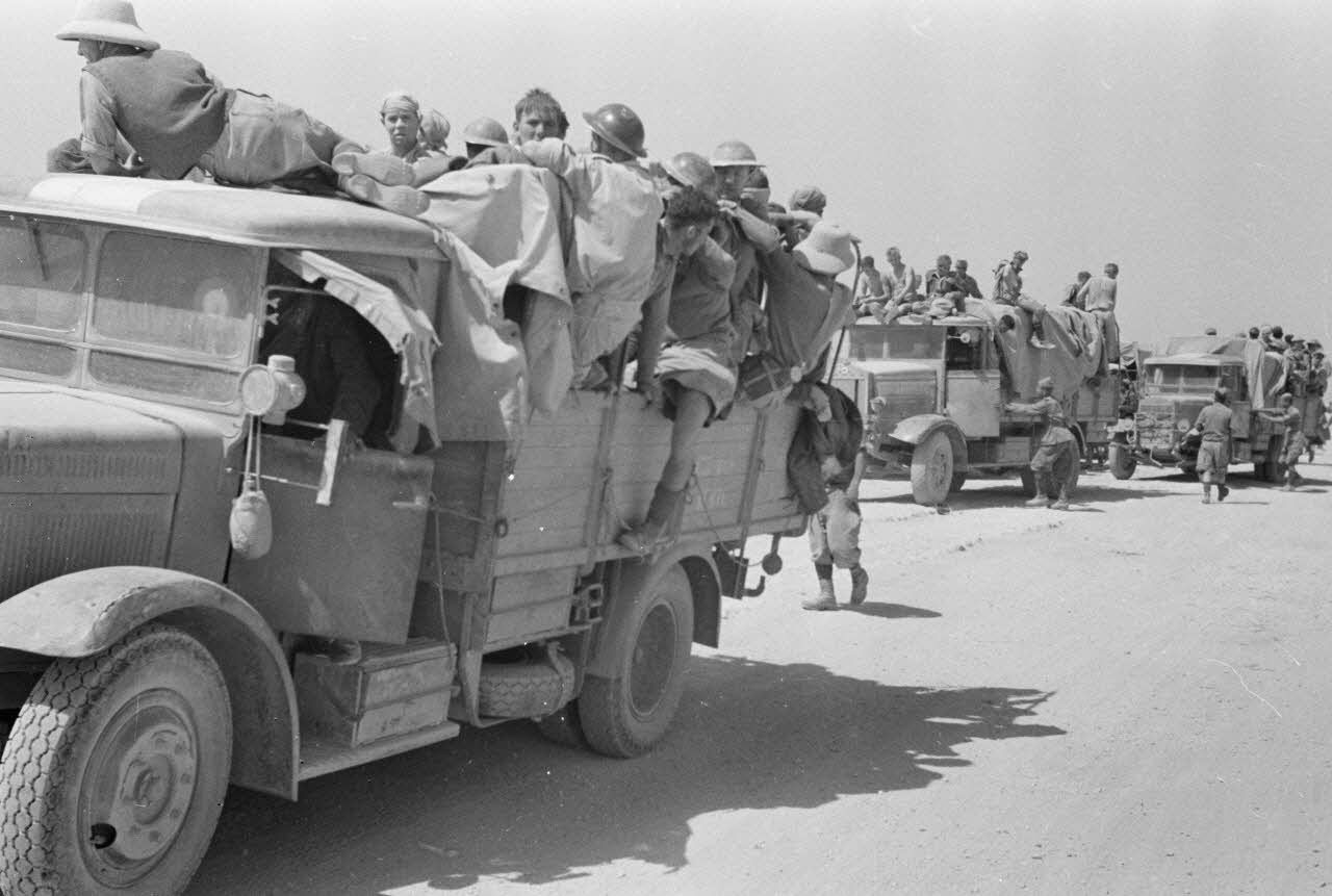 En Libye, des camions Fiat SPA 38R chargés de prisonniers britanniques.
