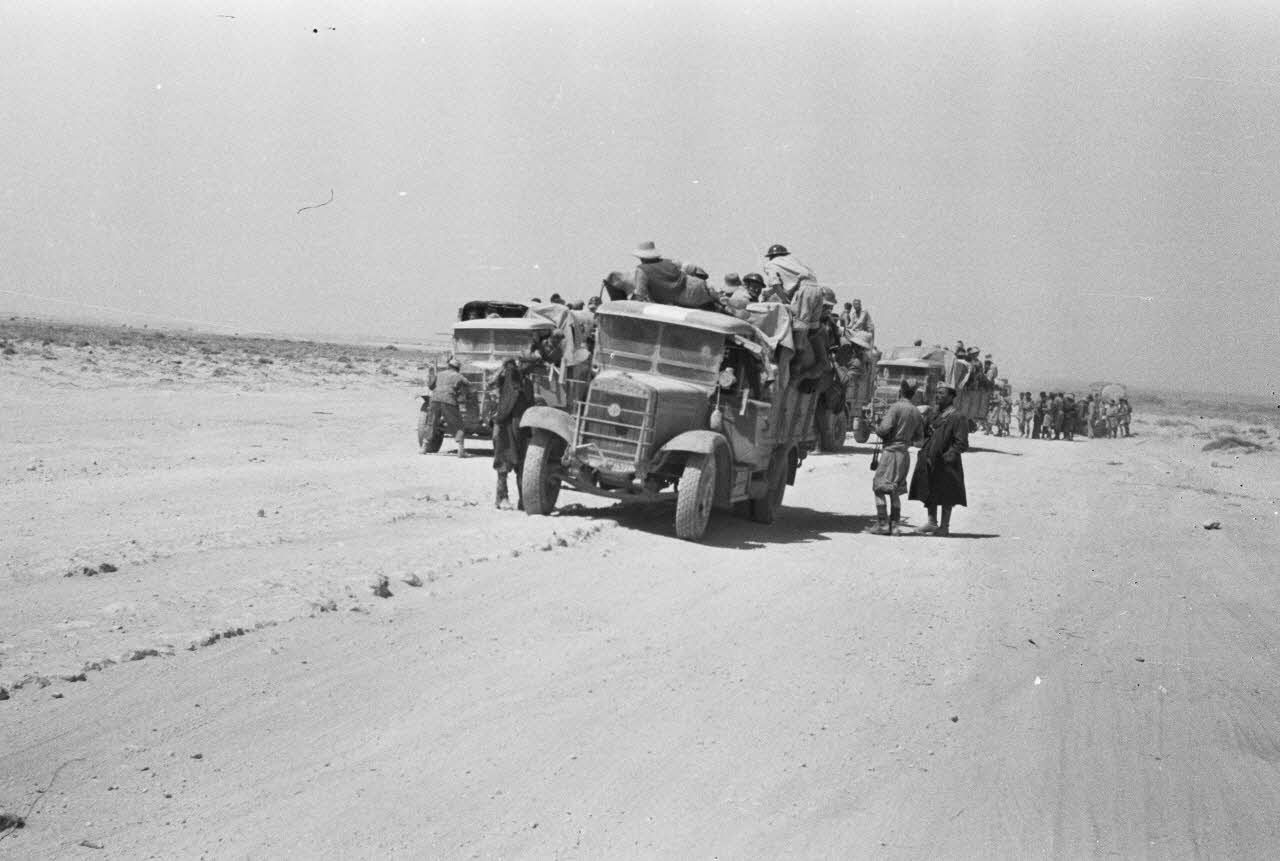En Libye, des camions Fiat SPA 38R chargés de prisonniers britanniques.