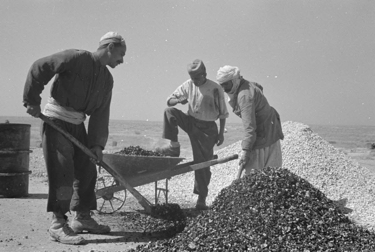 - les ouvriers libyens au travail sur la route ;