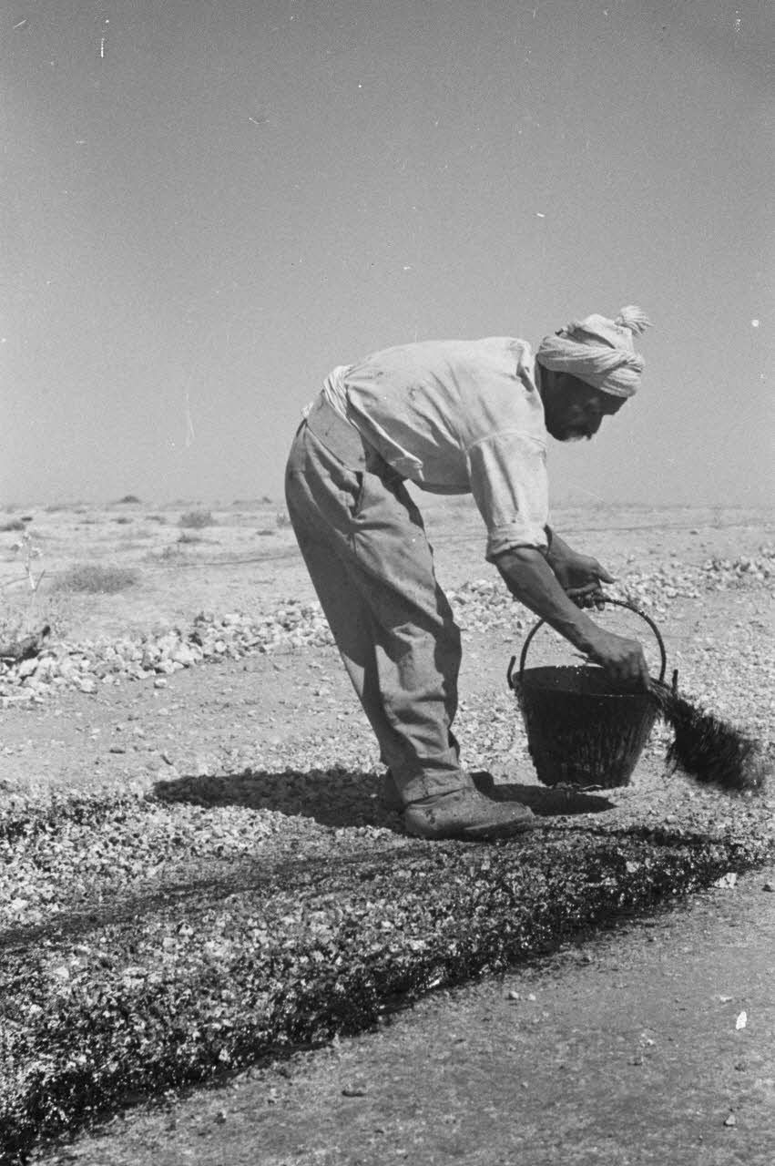 En Libye, un ouvrier libyen participe à la construction d'un terrain d'aviation occupé par la Luftwaffe.