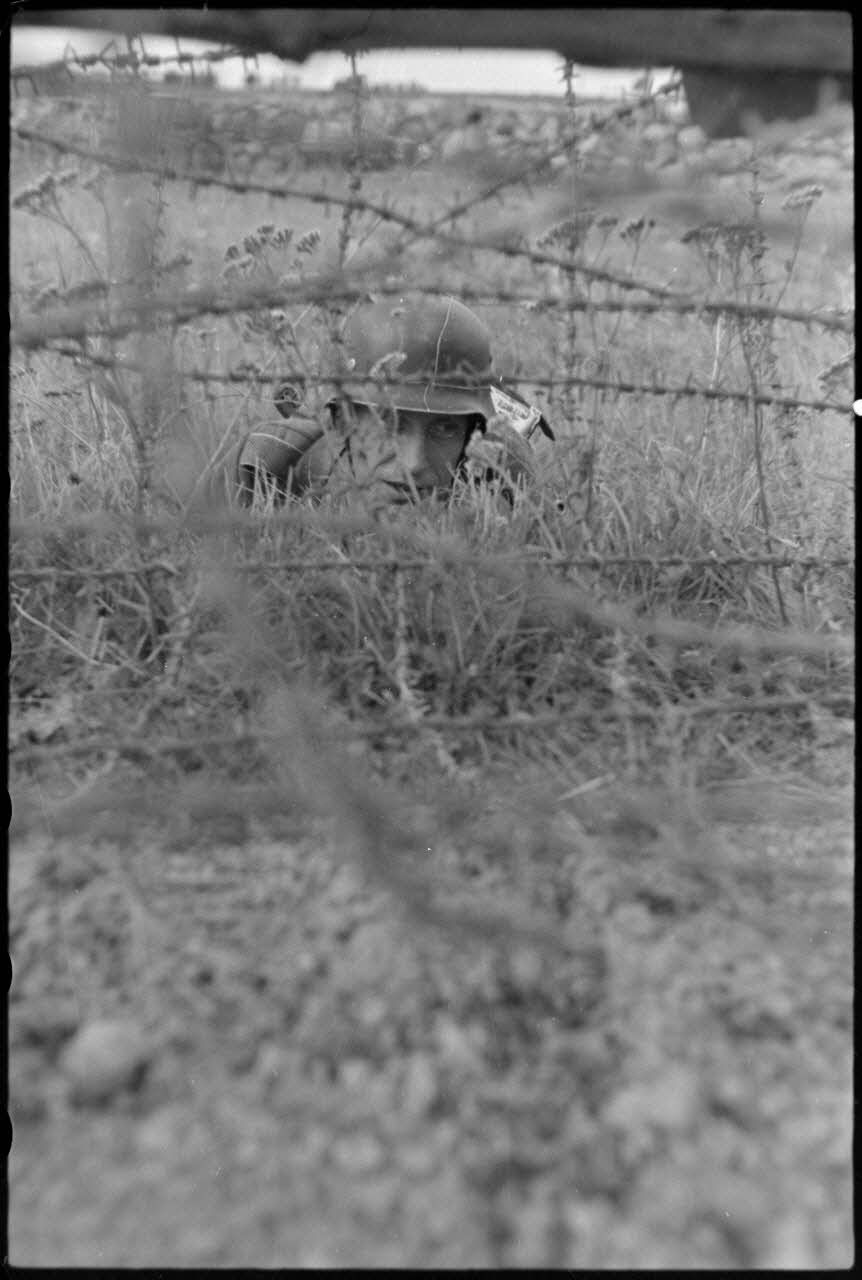 Après un briefing, les premiers parachutistes équipés de mitrailleuses MG-13 courent se poster pour le début de la manoeuvre. Plus loin, pour les besoins de la manoeuvre commune, des fantassins allemands joueront le rôle des ennemis.