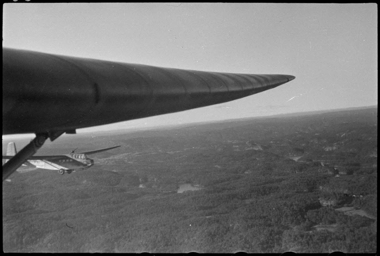 En Norvège, lors de manoeuvres, le reporter Stocker photographie deux chasseurs Messerschmitt Bf-109 alors qu'il est à bord d'un planeur DFS-230 du 8./Luftlandegeschwader 1.