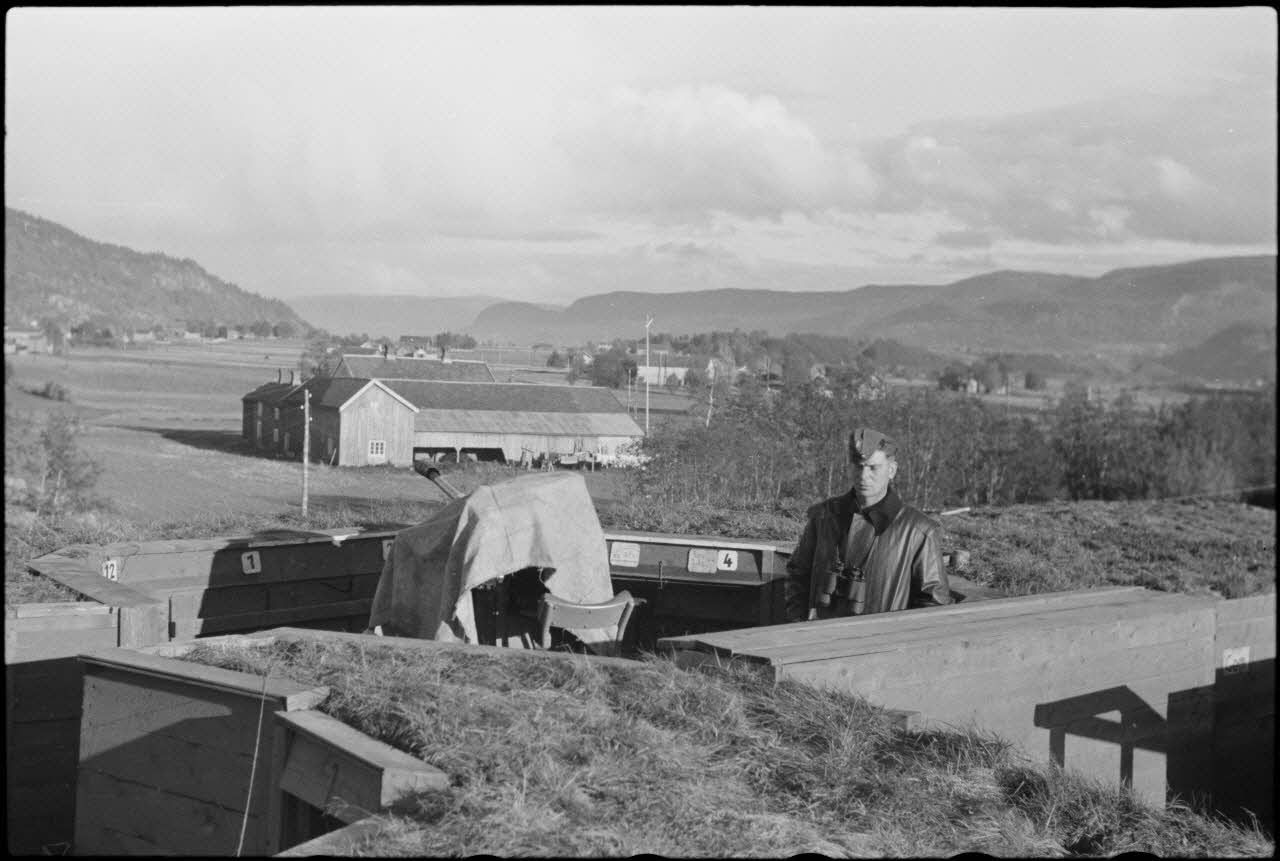 Sur un terrain d'aviation (région de Trondheim), un artilleur de la Luftwaffe monte la garde à proximité d'un canon antiaérien de 2 cm Flak 30.
