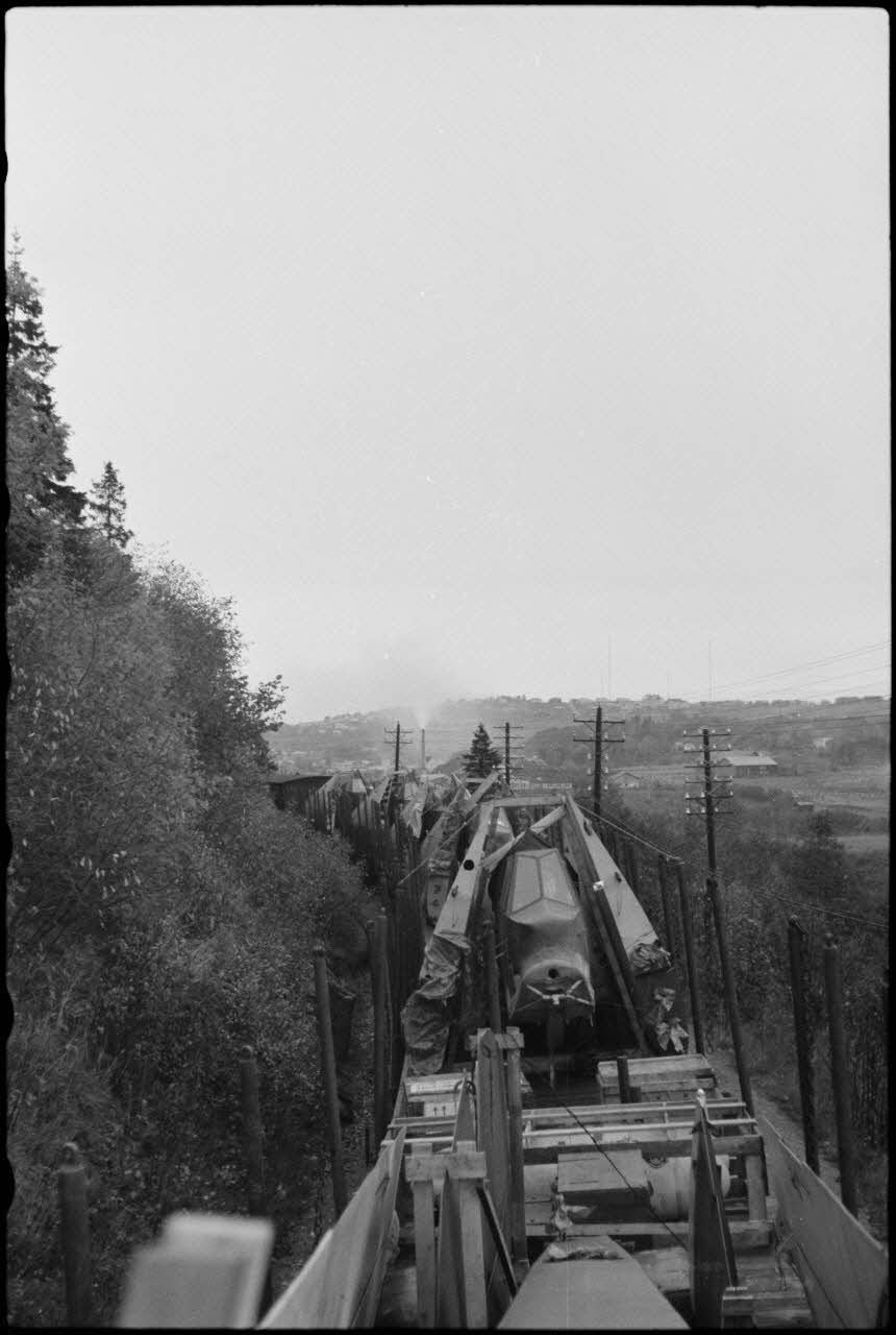 Notes : Le 8./LLG 1 est basé en Norvège de septembre au 6 novembre 1943. Selon les reportages du même photographe (Stocker), il n'est pas possible de savoir si les clichés illustrent le voyage vers Trondheim) ou vers un autre terrain d'aviation. En effet, les reportages photographiques qui suivent reviennent sur la présence de l'escadrille 8./LLG1 et les manœuvres autour de l'aérodrome.