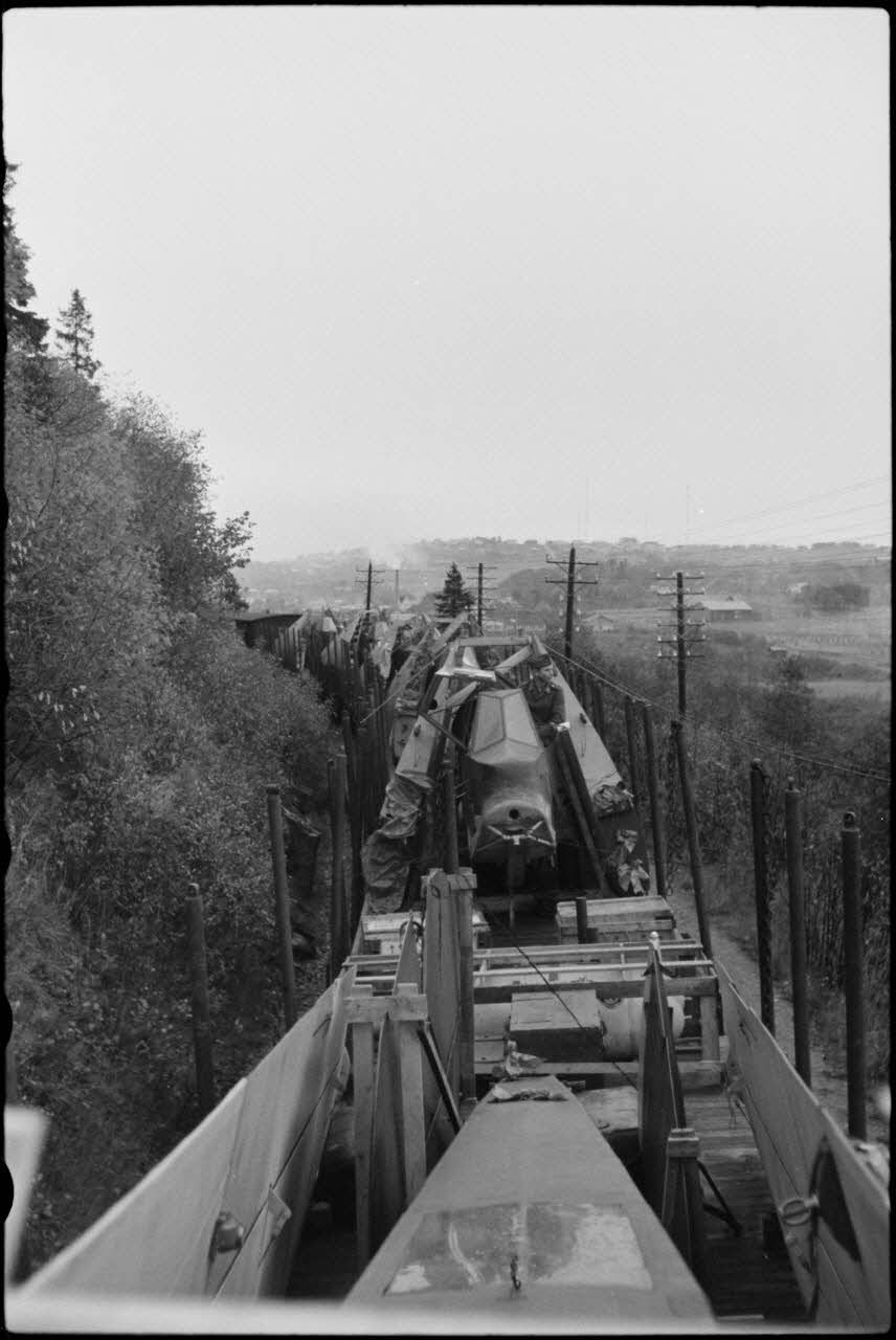 Notes : Le 8./LLG 1 est basé en Norvège de septembre au 6 novembre 1943. Selon les reportages du même photographe (Stocker), il n'est pas possible de savoir si les clichés illustrent le voyage vers Trondheim) ou vers un autre terrain d'aviation. En effet, les reportages photographiques qui suivent reviennent sur la présence de l'escadrille 8./LLG1 et les manœuvres autour de l'aérodrome.