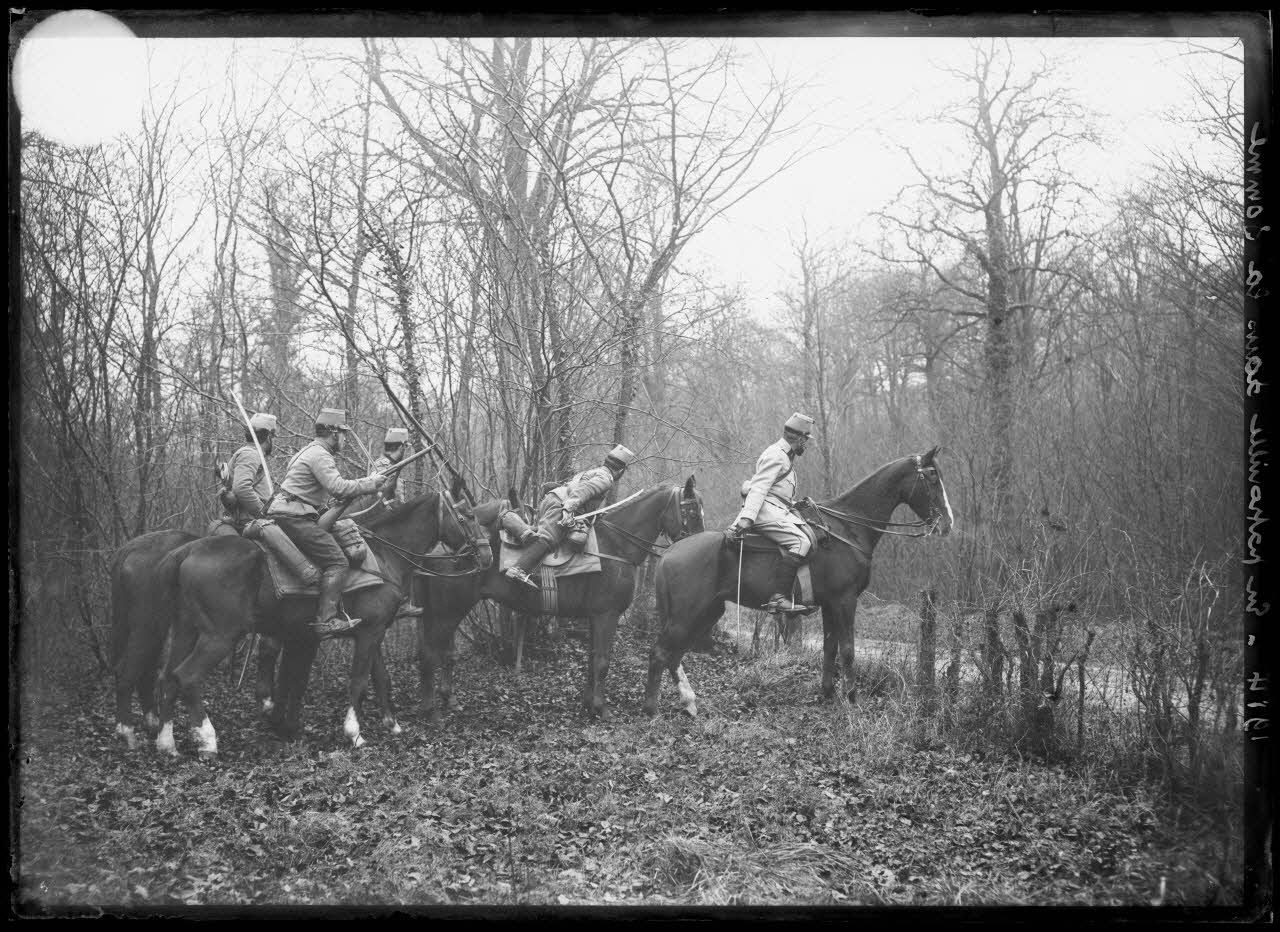 En patrouille dans la Somme, 1914. [légende d'origine]