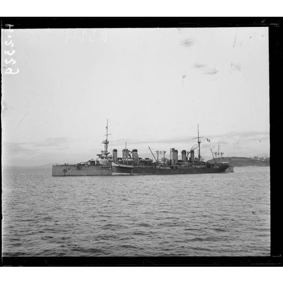 En rade de Moraitika. L'arrière du Miquelon et le croiseur cuirassé Victor Hugo.