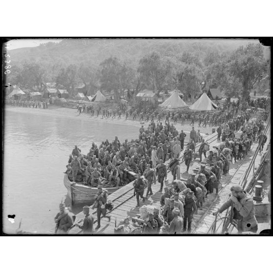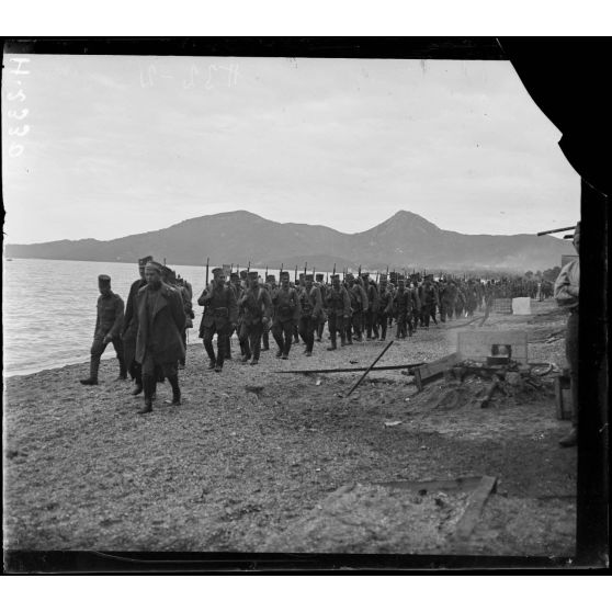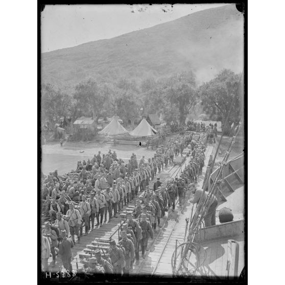 Moraitika. Fantassins serbes (division de la Drina) montant à bord du "Miquelon".