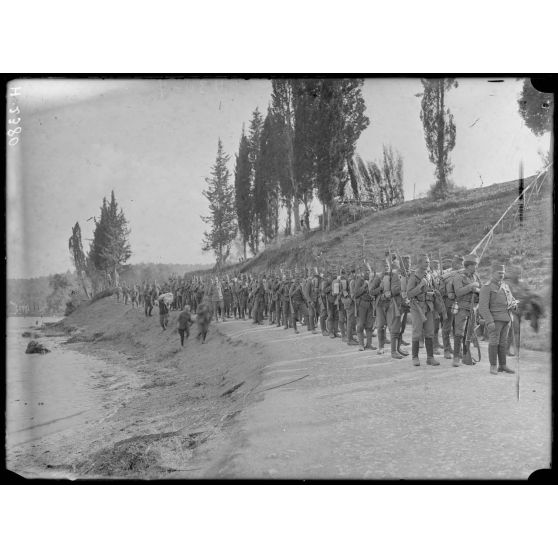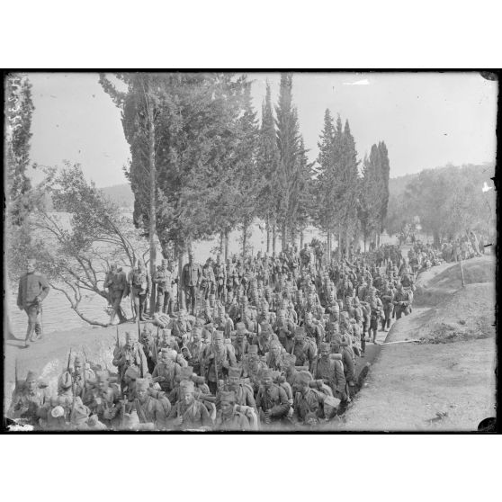Govino. Le 16e Régiment de la division de la Morava attendant son tour d'embarquement.
