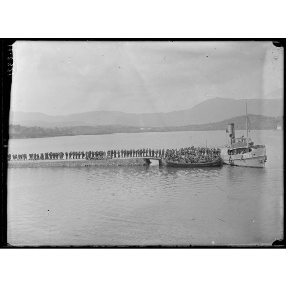 Rade de Govino. Troupes du 16e Régiment de la Morava embarquant sur l'Australien.