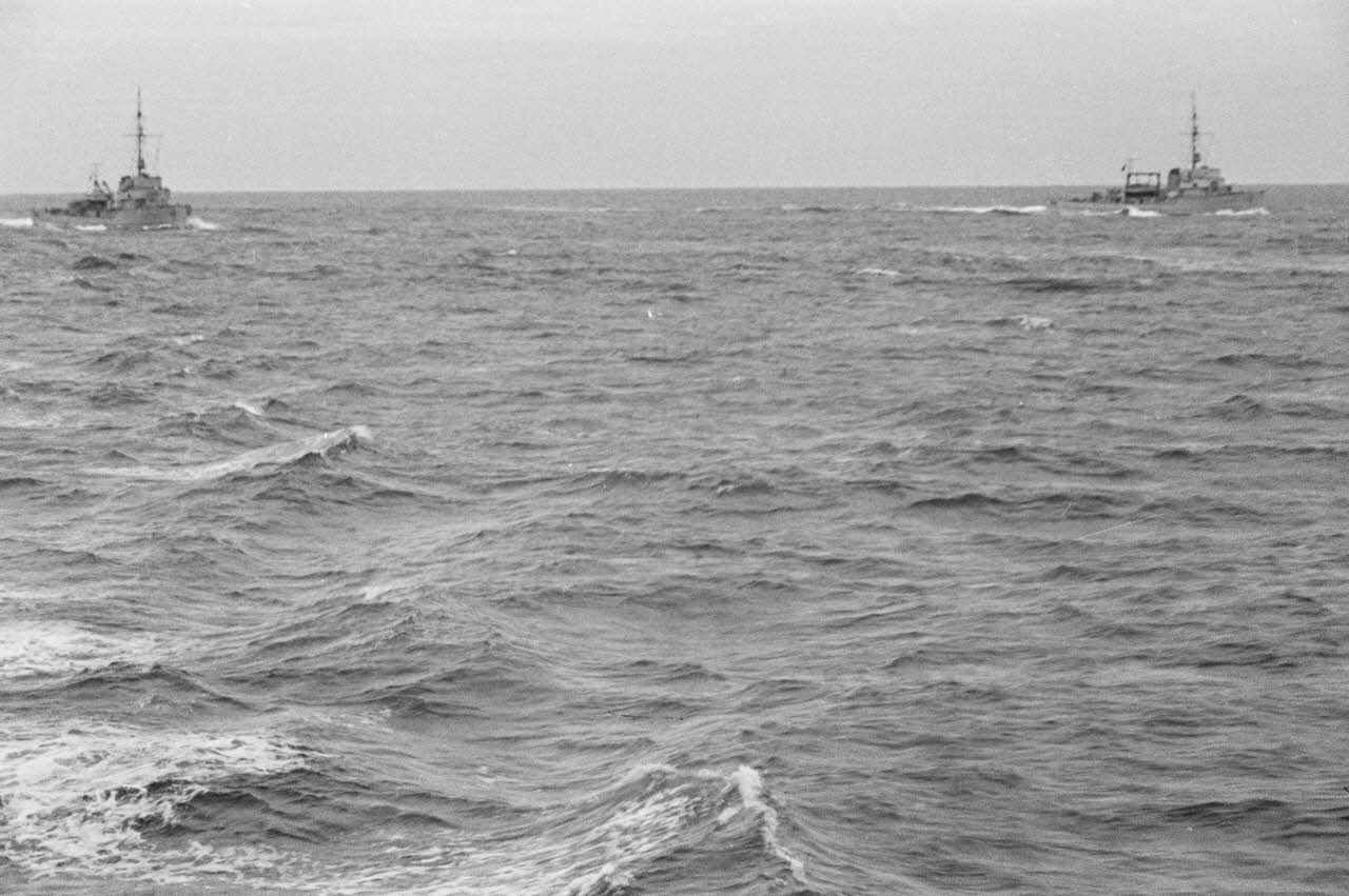 Note : A défaut de légende d'origine, l'ECPAD conserve pour le reporter Kramer un titre d'origine et le numéro de la compagnie dans laquelle évolue le reporter : la 5e demi-compagnie de reporters de guerre de la marine allemande (5 Marine Kriegsberichter-Halbkompanie). Ces informations tapées à la machine et agrafées au début de la pellicule photographique ne mentionnent pas la date ni le lieu du reportage. Le journal de marche de l'unité de propagande (Marine Propaganda-Abteilung West) est disponible aux archives du NARA de Washington (référence : NARA National Microcopy T-77 Roll 1021 Kriegsmarine 269). Pour la période concernée, on trouve la date exacte ainsi que le titre du reportage : 12-24.10 BB Kramer : Bordeinsatz auf einem Minensuchboot.