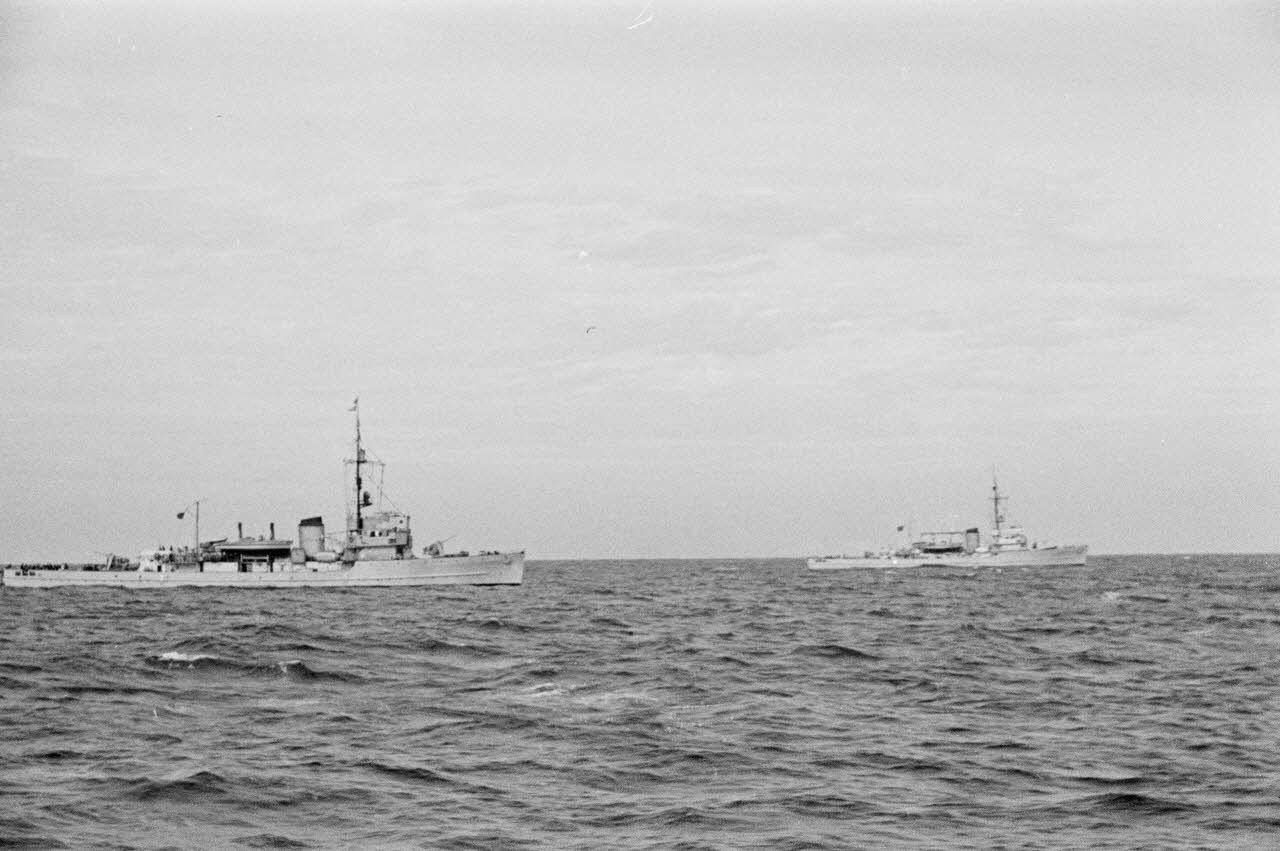 Note : A défaut de légende d'origine, l'ECPAD conserve pour le reporter Kramer un titre d'origine et le numéro de la compagnie dans laquelle évolue le reporter : la 5e demi-compagnie de reporters de guerre de la marine allemande (5 Marine Kriegsberichter-Halbkompanie). Ces informations tapées à la machine et agrafées au début de la pellicule photographique ne mentionnent pas la date ni le lieu du reportage. Le journal de marche de l'unité de propagande (Marine Propaganda-Abteilung West) est disponible aux archives du NARA de Washington (référence : NARA National Microcopy T-77 Roll 1021 Kriegsmarine 269). Pour la période concernée, on trouve la date exacte ainsi que le titre du reportage : 12-24.10 BB Kramer : Bordeinsatz auf einem Minensuchboot.