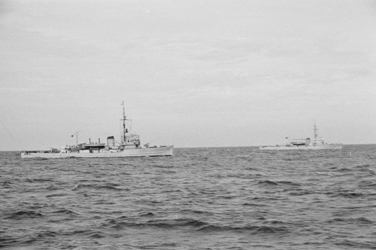 Note : A défaut de légende d'origine, l'ECPAD conserve pour le reporter Kramer un titre d'origine et le numéro de la compagnie dans laquelle évolue le reporter : la 5e demi-compagnie de reporters de guerre de la marine allemande (5 Marine Kriegsberichter-Halbkompanie). Ces informations tapées à la machine et agrafées au début de la pellicule photographique ne mentionnent pas la date ni le lieu du reportage. Le journal de marche de l'unité de propagande (Marine Propaganda-Abteilung West) est disponible aux archives du NARA de Washington (référence : NARA National Microcopy T-77 Roll 1021 Kriegsmarine 269). Pour la période concernée, on trouve la date exacte ainsi que le titre du reportage : 12-24.10 BB Kramer : Bordeinsatz auf einem Minensuchboot.