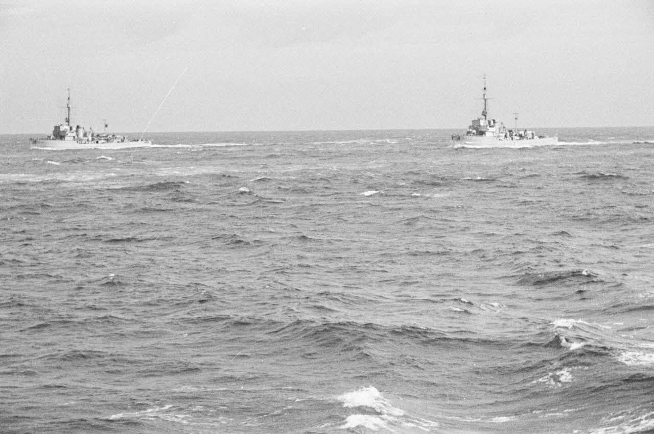 Note : A défaut de légende d'origine, l'ECPAD conserve pour le reporter Kramer un titre d'origine et le numéro de la compagnie dans laquelle évolue le reporter : la 5e demi-compagnie de reporters de guerre de la marine allemande (5 Marine Kriegsberichter-Halbkompanie). Ces informations tapées à la machine et agrafées au début de la pellicule photographique ne mentionnent pas la date ni le lieu du reportage. Le journal de marche de l'unité de propagande (Marine Propaganda-Abteilung West) est disponible aux archives du NARA de Washington (référence : NARA National Microcopy T-77 Roll 1021 Kriegsmarine 269). Pour la période concernée, on trouve la date exacte ainsi que le titre du reportage : 12-24.10 BB Kramer : Bordeinsatz auf einem Minensuchboot.