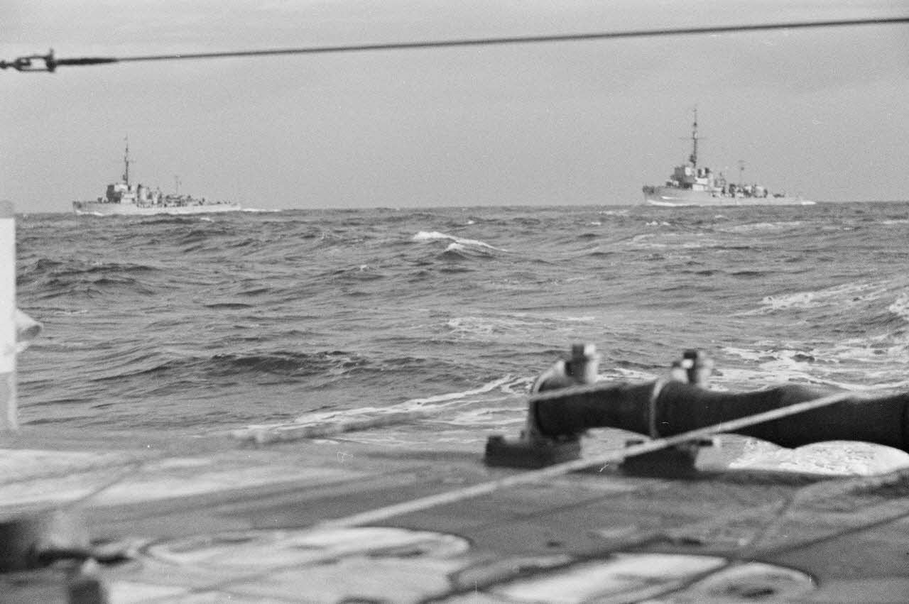 Note : A défaut de légende d'origine, l'ECPAD conserve pour le reporter Kramer un titre d'origine et le numéro de la compagnie dans laquelle évolue le reporter : la 5e demi-compagnie de reporters de guerre de la marine allemande (5 Marine Kriegsberichter-Halbkompanie). Ces informations tapées à la machine et agrafées au début de la pellicule photographique ne mentionnent pas la date ni le lieu du reportage. Le journal de marche de l'unité de propagande (Marine Propaganda-Abteilung West) est disponible aux archives du NARA de Washington (référence : NARA National Microcopy T-77 Roll 1021 Kriegsmarine 269). Pour la période concernée, on trouve la date exacte ainsi que le titre du reportage : 12-24.10 BB Kramer : Bordeinsatz auf einem Minensuchboot.