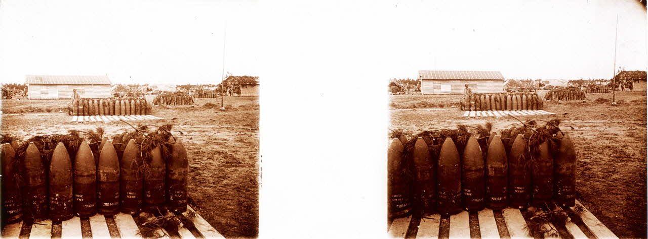 Ce reportage rassemble des photographies de différents canons utilisés pendant la Première Guerre mondiale, de leurs munitions, et de soldats les approvisionnant.