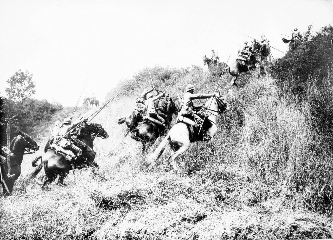 La cavalerie s'entraîne aux passages difficiles. Aisne, 1917.