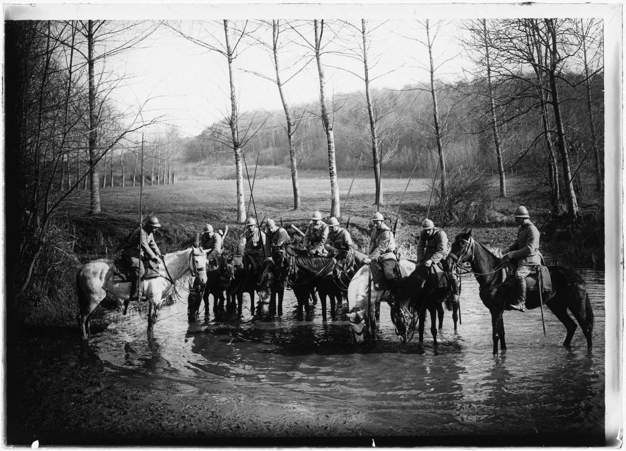 La cavalerie s'entraîne aux passages difficiles. Aisne, 1917.