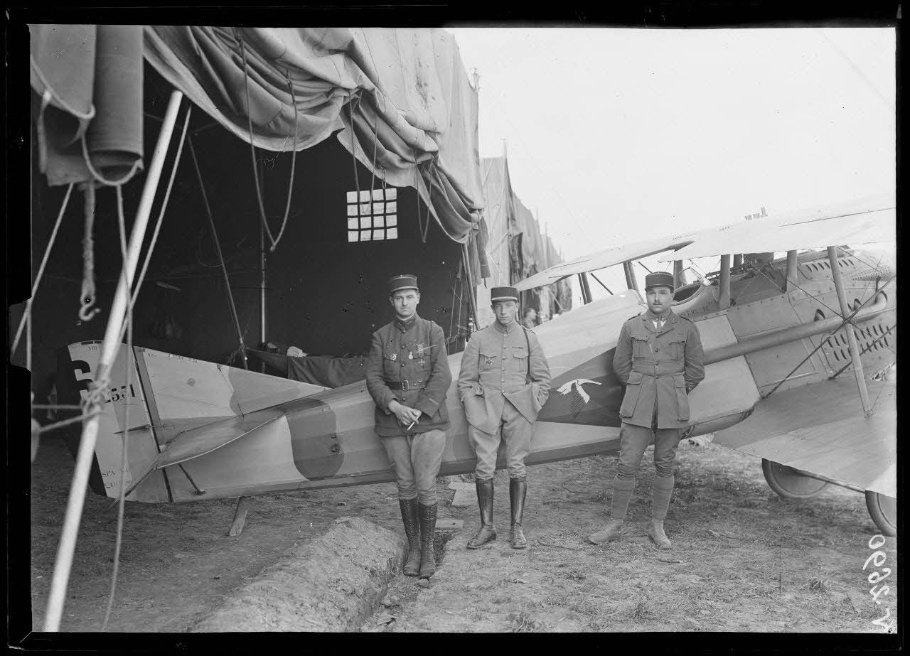 Les As du groupe de combat 12 au camp d'aviation de Hétomesnil, Oise, mai 1918.