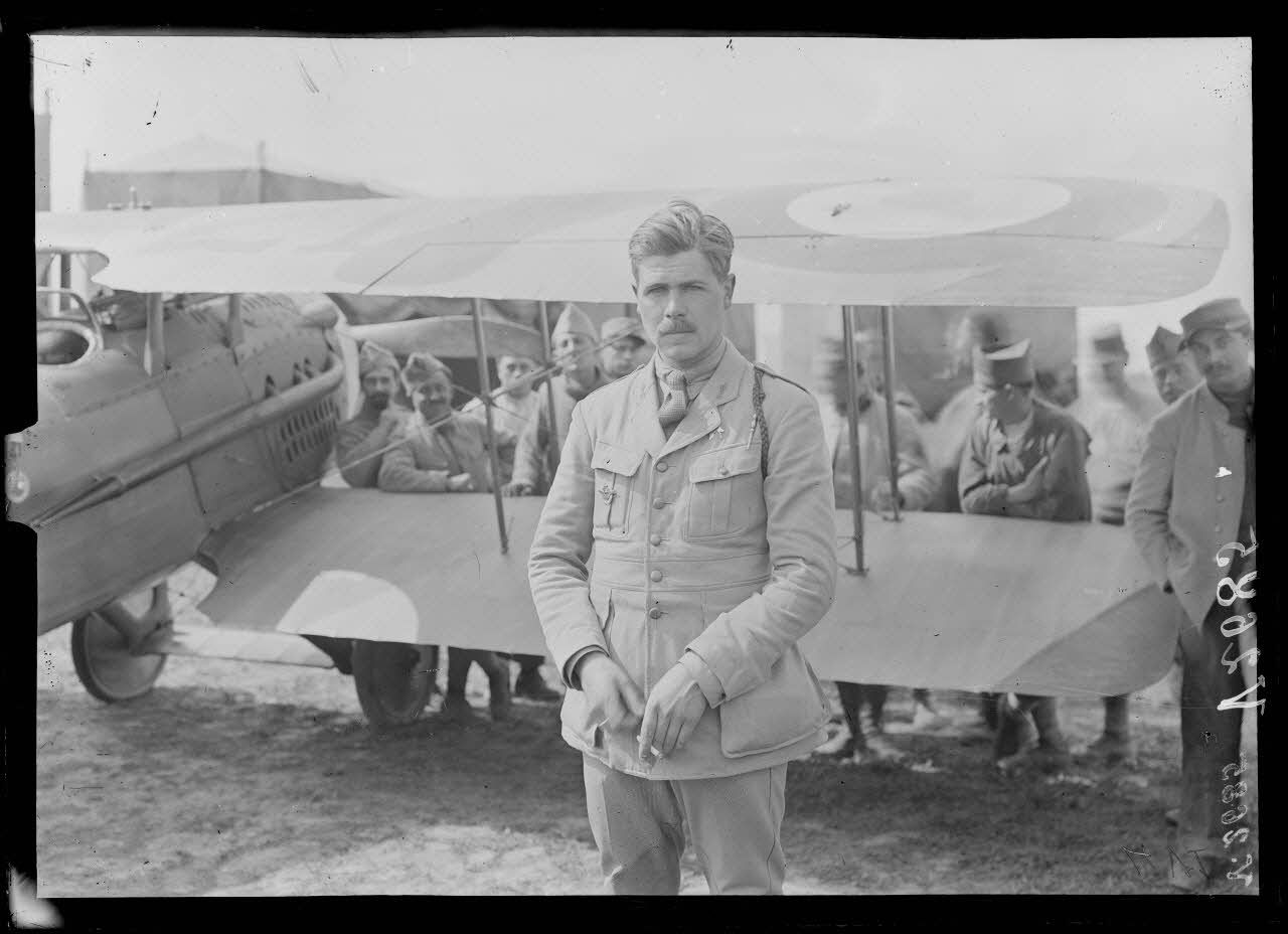 Entre Hamel et Hétomesnil, Oise, camp d'aviation. Le lieutenant Bozon-Verduraz, qui a souvent accompagné Guynemer et a descendu 3 avions allemands.