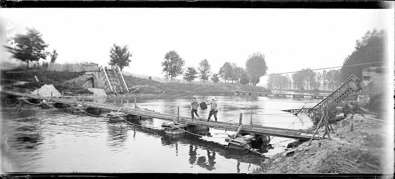 Entre Koeur et Bislée (Meuse). Passerelle sur la Meuse. [légende d'origine]