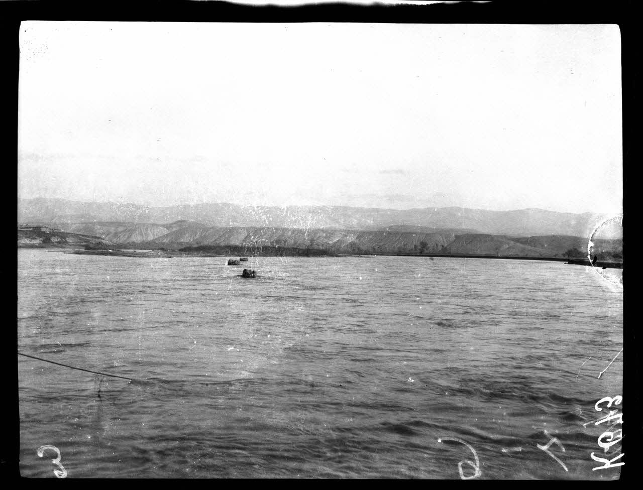 Entre Krivolak et Pepelicht. Le Vardar et les monts occupés par les Bulgares (vue prise du bac). [légende d'origine]