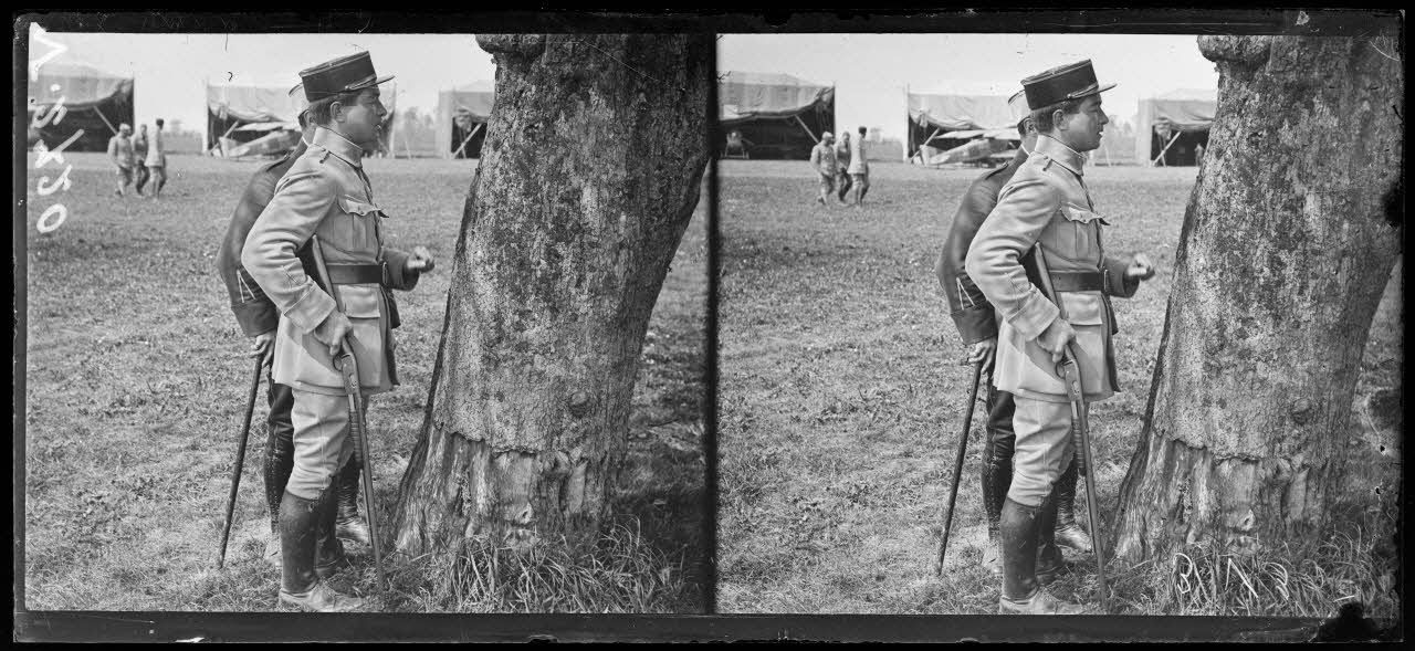 Entre Le Hamel et Hétomesnil, Oise, camp d'avions de chasse. Une des distractions préférée de nos as, le tir à la carabine dans un casque lancé en l'air (Capitaine de Sévin, 8 appareil allemands).