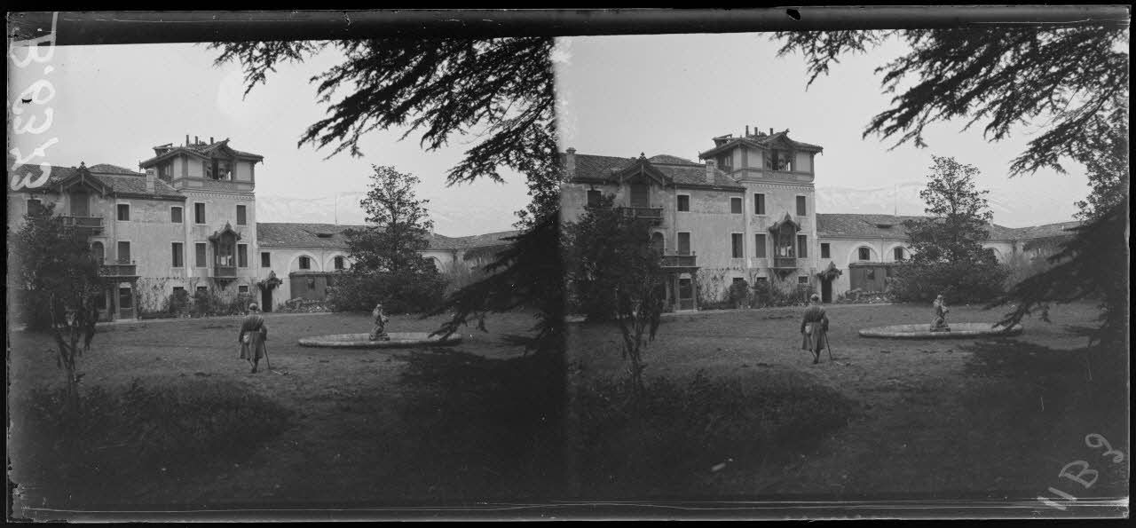Environs de Covolo. PC italien dans un château. Au fond, montagne occupée par l'ennemi. [légende d'origine]