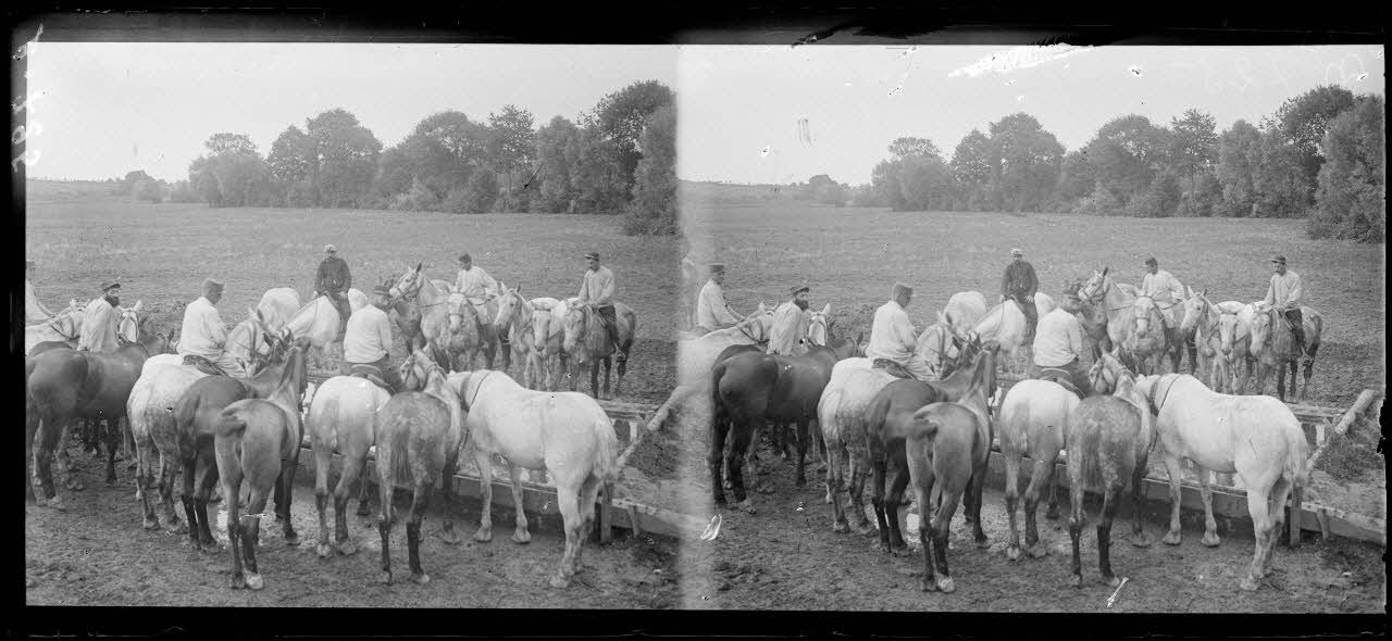 Environs de Daucourt (Marne) : chevaux à l’abreuvoir. [légende d’origine]