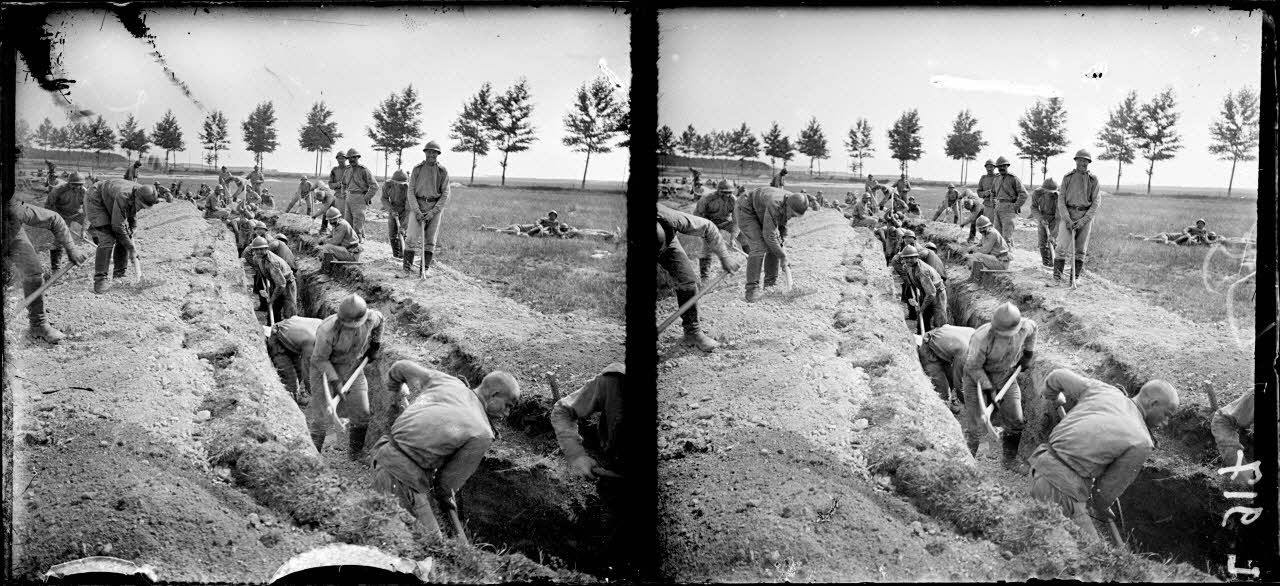 - des soldats creusent des tranchées de soutien aux environs du camp de Mourmelon ;