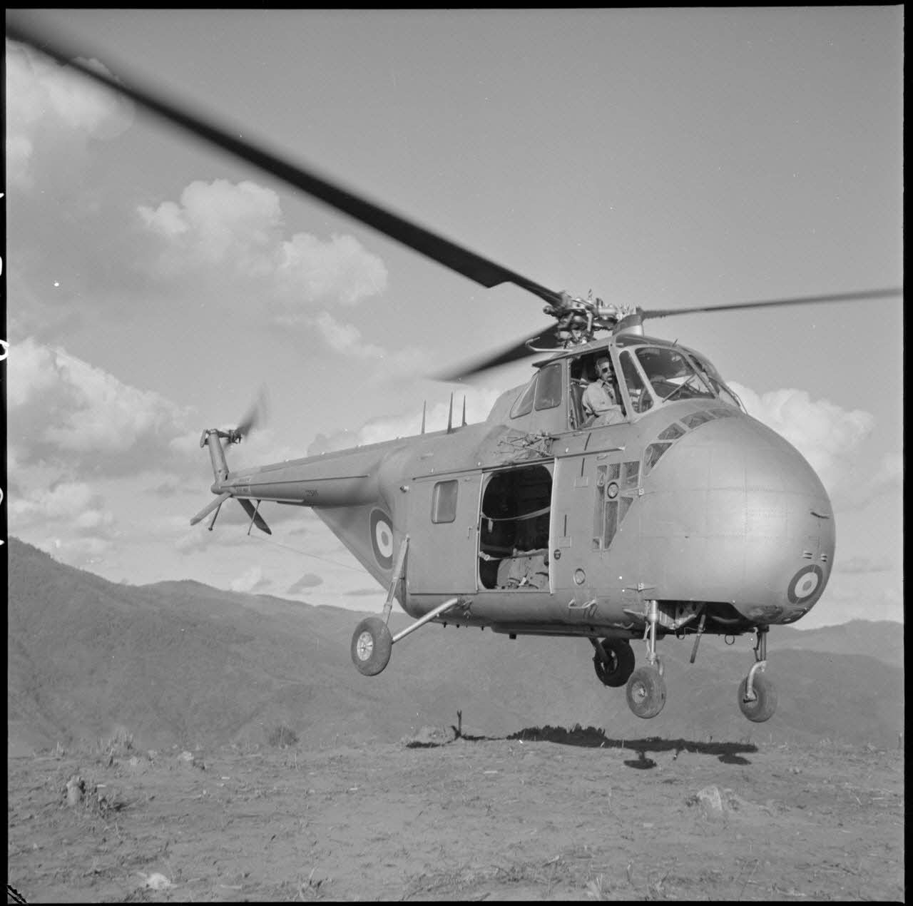 Arrivée d'un hélicoptère Sikorsky pour évacuer des blessés d'un point d'appui de Muong Khoua.