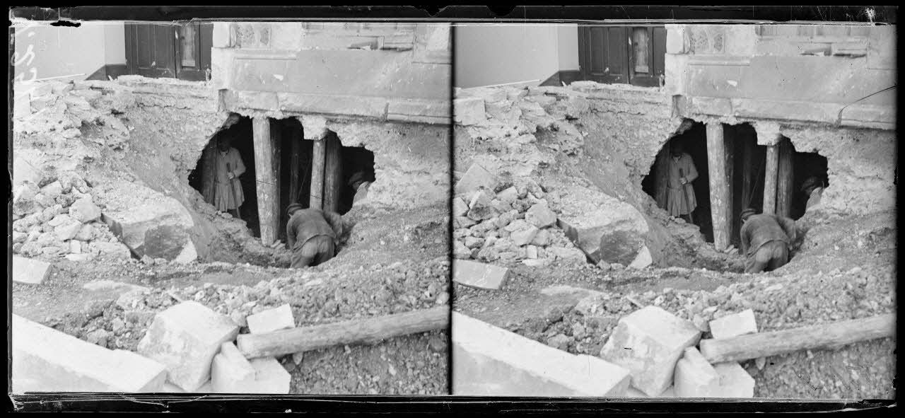 - A Epernay, (Marne, 13/03/1918, V 2545 à V 2553) le presbytère de l'église Saint-Pierre et des habitations ont été touchés lors d'un bombardement aérien. Un soldat est pris en portrait pour des photos d'identité (V 2551 à V 2553).