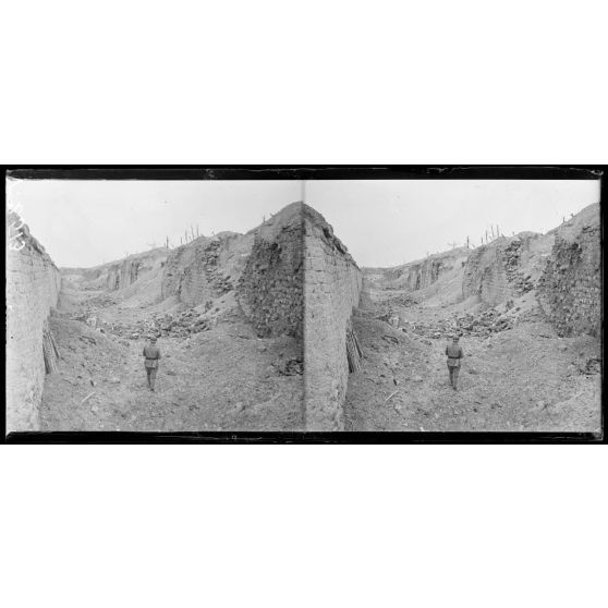 Fort de la Pompelle, Marne, le fort après les attaques du 1er et du 2 mars 1918. Un fossé.
