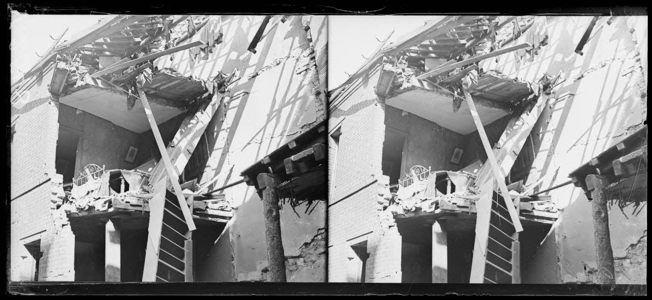 - A Epernay, (Marne, 13/03/1918, V 2545 à V 2553) le presbytère de l'église Saint-Pierre et des habitations ont été touchés lors d'un bombardement aérien. Un soldat est pris en portrait pour des photos d'identité (V 2551 à V 2553).