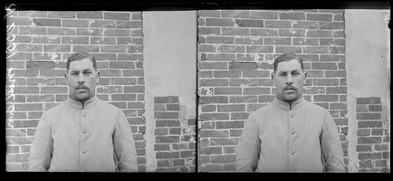 - A Epernay, (Marne, 13/03/1918, V 2545 à V 2553) le presbytère de l'église Saint-Pierre et des habitations ont été touchés lors d'un bombardement aérien. Un soldat est pris en portrait pour des photos d'identité (V 2551 à V 2553).