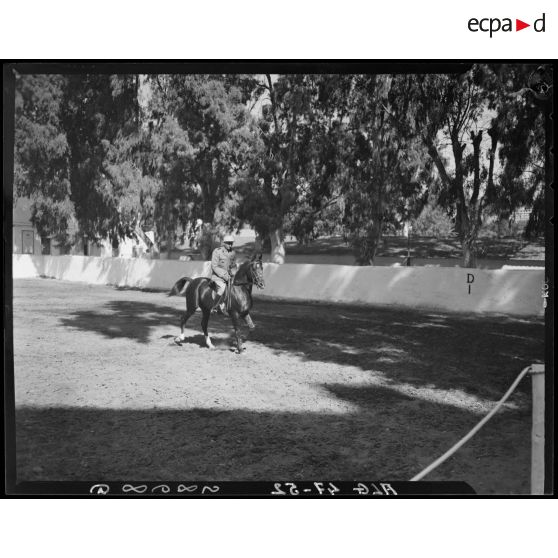 Championnat de cheval de selle : sauts d'obstacles, courses hippiques et figures de manèges s'enchainent, sous le regard d'autorités militaires, parmi lesquelles le général Jean Noiret.