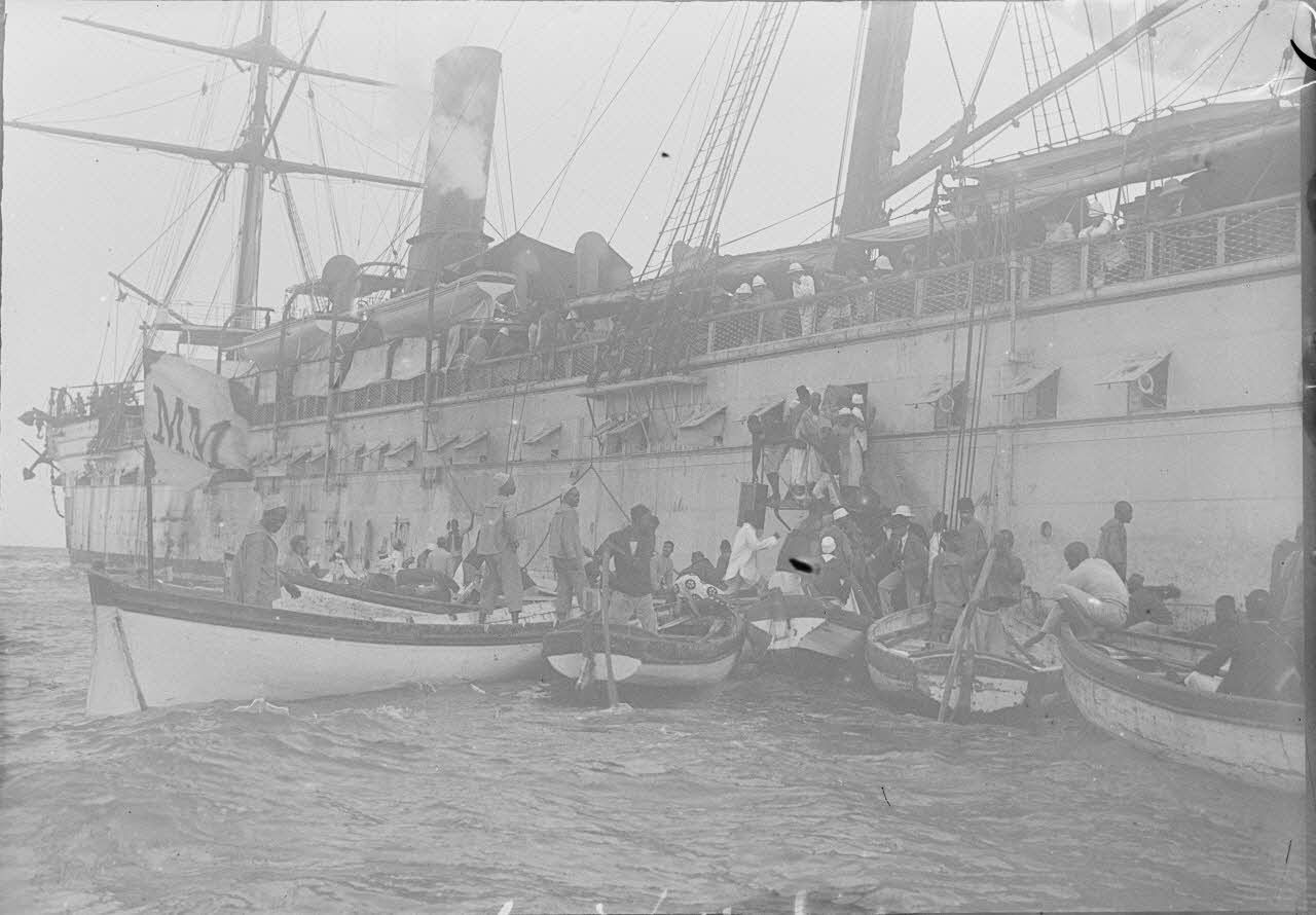 Edgard Imbert (1873-1915), sous-lieutenant de l'infanterie coloniale et photographe, quitte le port de Toulon à bord du navire L'Iraouaddy le 10 février 1900 pour se rendre à Madagascar. Il photographie les différentes étapes du trajet, dont une escale à Suez, les différents paysages marins et le quotidien à bord du navire.