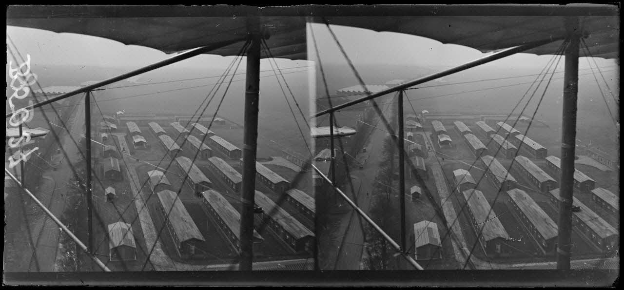 Etampes, les baraquements de l’école pris d’un Farman en vol. [légende d’origine]
