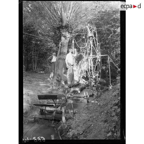 Mondement (Marne). La tour et le château se reflètent dans l'eau.