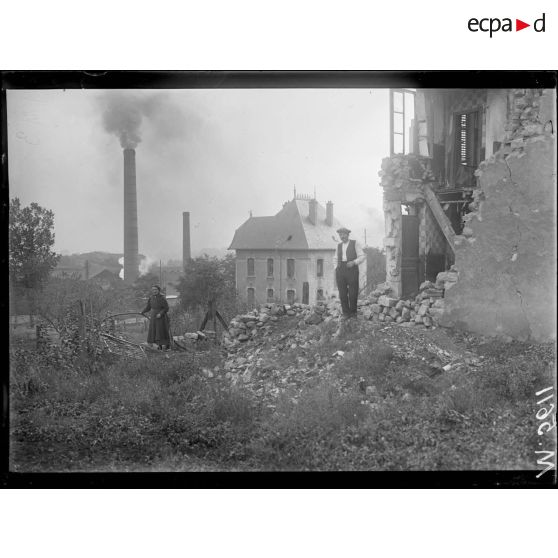 Pompey, une fonderie que les allemands ont bombardé par avions et par canon de 380. Maison atteinte par une torpille allemande.